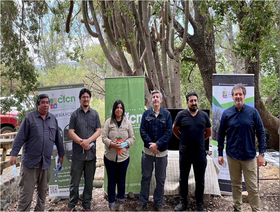 El encuentro se desarrolló en forma presencial en la administración y vivero de la Reserva Natural Privada Altos de Cantillana (RNPAC) y contó con la participación de Fernanda Romero, investigadora coordinadora de la (RNAC) y de los académicos Alan Zamorano, de la Facultad de Ciencias Agronómicas, y Eduardo Martínez e Iván Grez, de la Facultad de Ciencias Forestales y de la Conservación de la Naturaleza; además de los profesores Fiore y Magni.
