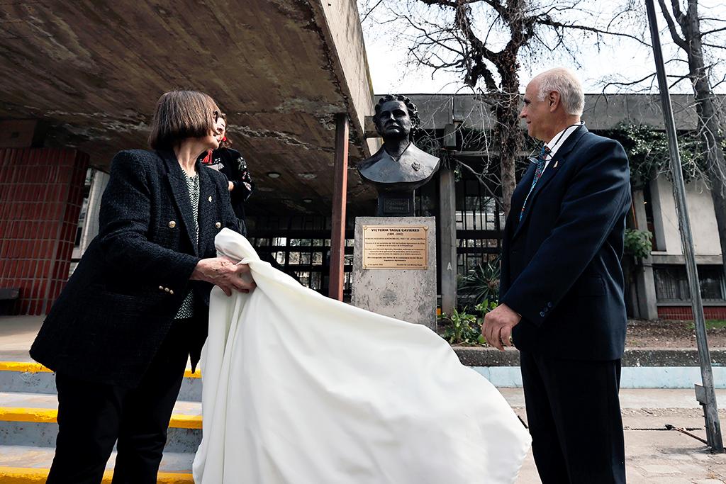 El acto fue coronado con la develación de un busto esculpido por el destacado artista Luis Montes Rojas, académico y vicedecano de la Facultad de Artes, y una placa conmemorativa, que recordarán para siempre la valentía y dedicación de Victoria Tagle, quien, a pesar de las adversidades, decidió romper barreras y perseguir sus sueños en una época en que el estudio y trabajo de las mujeres en estos campos no era comúnmente aceptado.