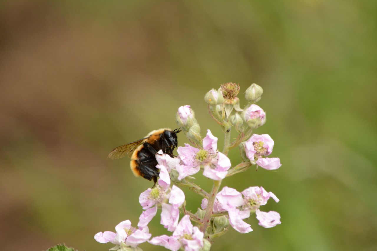 El Bombus dahlbomii, conocido popularmente como “moscardón” o “abejorro colorado”, es el polinizador más grande del mundo y un componente esencial de los ecosistemas del sur de Sudamérica. Su cuerpo cubierto de un espeso pelaje anaranjado y su larga probóscide lo convierten en un polinizador altamente eficiente de flores nativas con corolas alargadas.