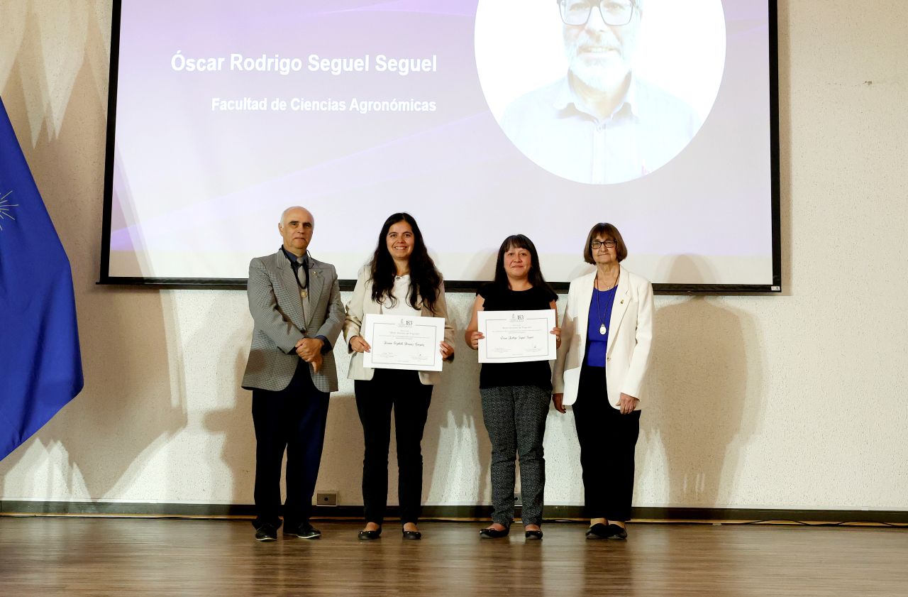 En esta ocasión, fueron distinguidos por la Facultad de Ciencias Agronómicas la Dra. Roxana Bórquez González, académica del Departamento de Gestión e Innovación Rural y Dr. Óscar Seguel Seguel, académico del Departamento de Ingeniería y Suelos.